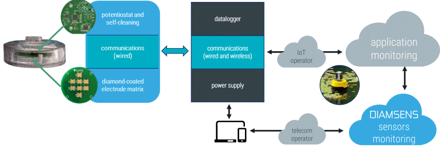 DIAMSENS monitors the progressive clogging of the electrodes and only activates this self-cleaning process when the accuracy of the measurements is at stake. The energy expenditure is thus minimized